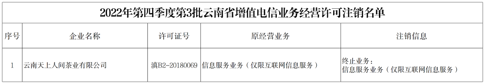 2022年第四季度第3批云南省增值电信业务经营许可注销名单