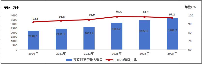 图4-1 2020-2025年互联网宽带接入端口发展情况