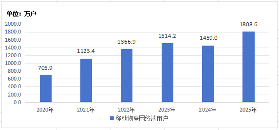 截至2025年底,移动物联网终端用户达1808.6万户,全国排名第22,比上年末净增349.6万户。其中应用于车联网、公共服务、智慧家居、智慧医疗、零售服务终端用户占比分别达35.1%、25.8%、7.2%、5.6%、5.4%。