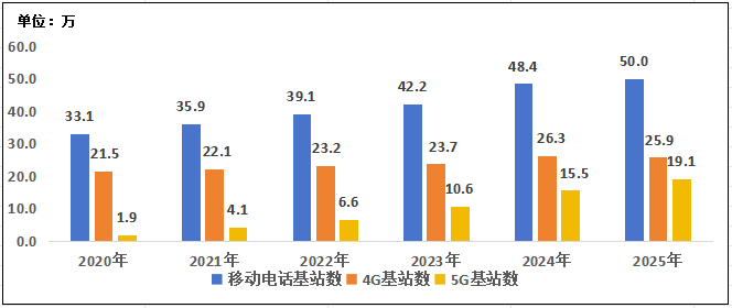 截至2025年底,全省移动通信基站总数达50.0万个,全国排名第9,比上年末净增1.6万个。其中,4G基站25.9万个;5G基站19.1万个,全国排名第9,比上年末净增3.7万个。5G基站占移动电话基站总数达38.2%,占比较上年末提升6.3个百分点。