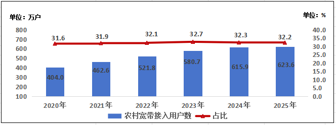 图2-3 2020-2025年农村宽带接入用户及占比情况