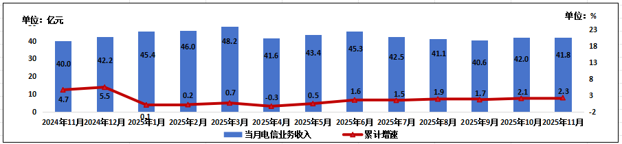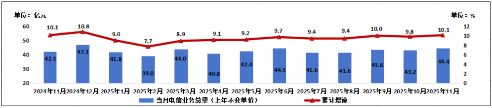 2025年1-11月,全省通信业整体运行平稳。电信业务量收稳步增长,移动互联网接入流量保持较快增长,5G、千兆光网、物联网等网络基础设施建设深入推进。